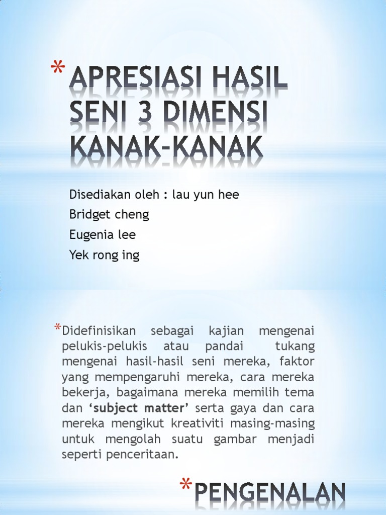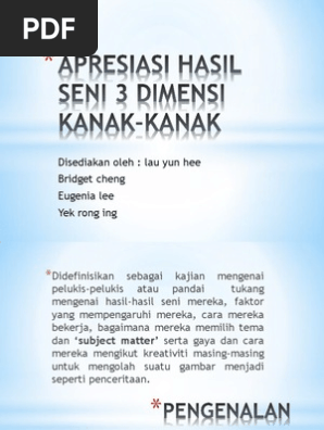 Apresiasi Hasil Seni 3dimensi Kanak Kanak Presentation Pdf